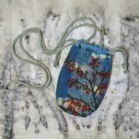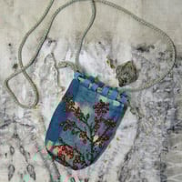 A little handmade necklace pouch for keeping medicine close to the heart. I have embroidered Japanese barberry 'berberis thunbergi' on this little pouch which can be used for keeping treasures of the heart, crystals, amulets, herbs or precious words.